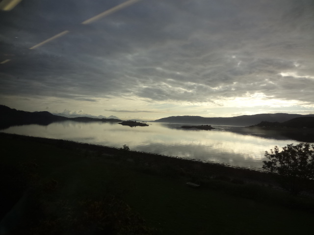 Then it was from the bus station to the train station in Perth to Inverness to change in a hurry to Kyleakin in a train car with John – yes another John – a man from Atlanta but raised in Pittsburgh, and a young man – Jonathan for a change – who told me where to sit for the best view. And sure enough I could see why I wanted to come here. I overheard John makingplans to rent a car to take to Carbost and asked if he would care to take me and Jonathan who could help direct him. Such a Dad thing to do but I was so tired of schlepping this luggage.